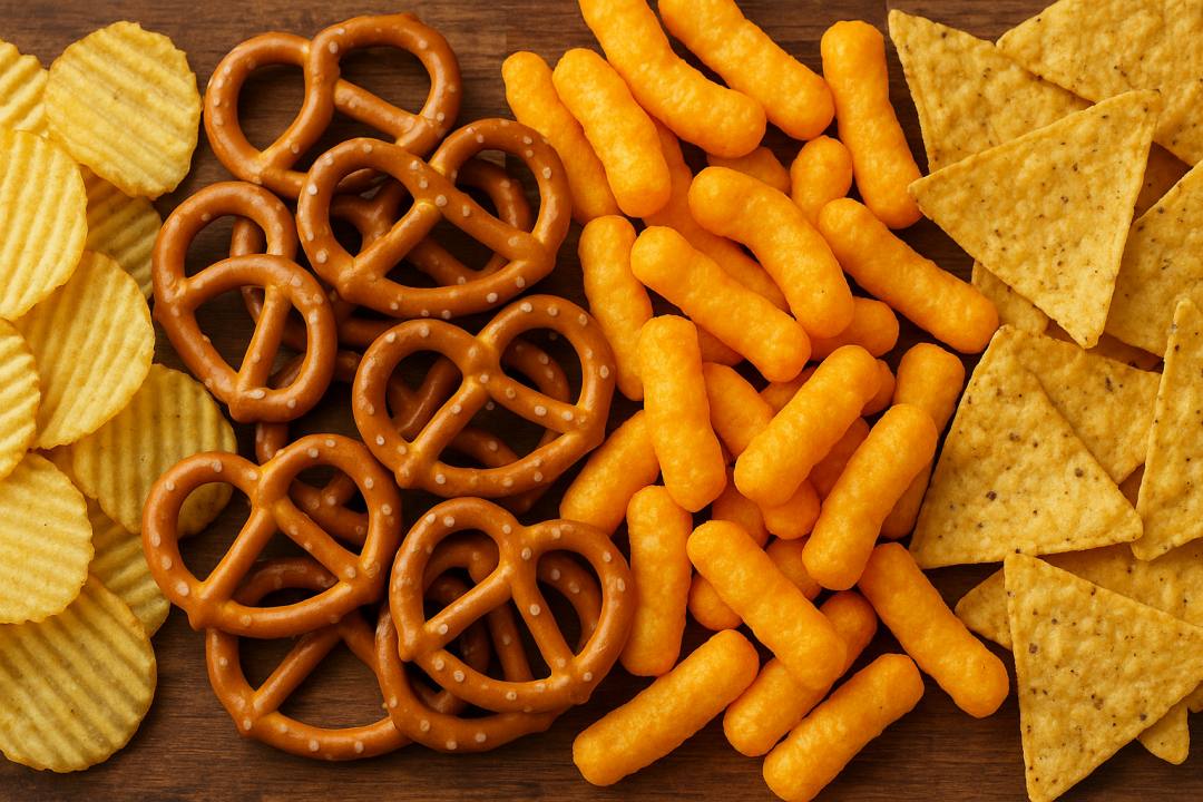스낵류는 정식으로 먹는 음식보다 입에서 침을 적게 나오게 합니다. 때문에 과자를 다 먹고 난 뒤에도 치아 사이에 과자 찌꺼기가 남아 있는 가능성이 높습니다. 감자 칩 같은 스낵을 자주 먹을 경우, 플라크 속 세균이 음식물을 산성화시켜 치아를 부식시킬 수 있습니다.